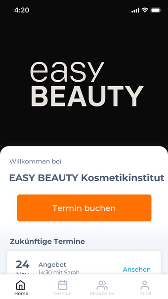 EASY BEAUTY สถาบันเครื่องสำอางค์เป็นแอปพลิเคชันที่พัฒนาโดย Buersner Hegedues GmbH สำหรับผู้ใช้ iPhone แอปฟรีนี้มีเป้าหมายเพื่อทำให้ลูกค้าสามารถค้นหา จอง และจัดการการนัดหมายได้อย่างง่ายดายทั้งหมดในที่เดียวกัน ด้วยเพียงไม่กี่คลิกผู้ใช้สามารถเพิ่มความเป็นอยู่รอยยิ้มและความสวยงามของตนเอง